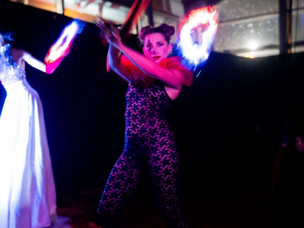 ✨ Cocktail serviti da artiste con gonne scenografiche,